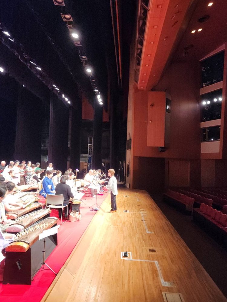 そして今回は記念の会ということで、有志による合同曲として宮城道雄作曲『道灌』を50名で演奏いたしました!会派の枠を超えて、普段ご一緒させていただくことのない先生方と共演させていただきました!まずはリハーサルの様子をご覧ください。